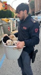 Gli operatori di volante prestavano immediatamente soccorso ai cuccioli portandoli nell’auto di servizio e contattavano personale veterinario ASL, che verificava che i cuccioli erano in buone condizioni di salute.