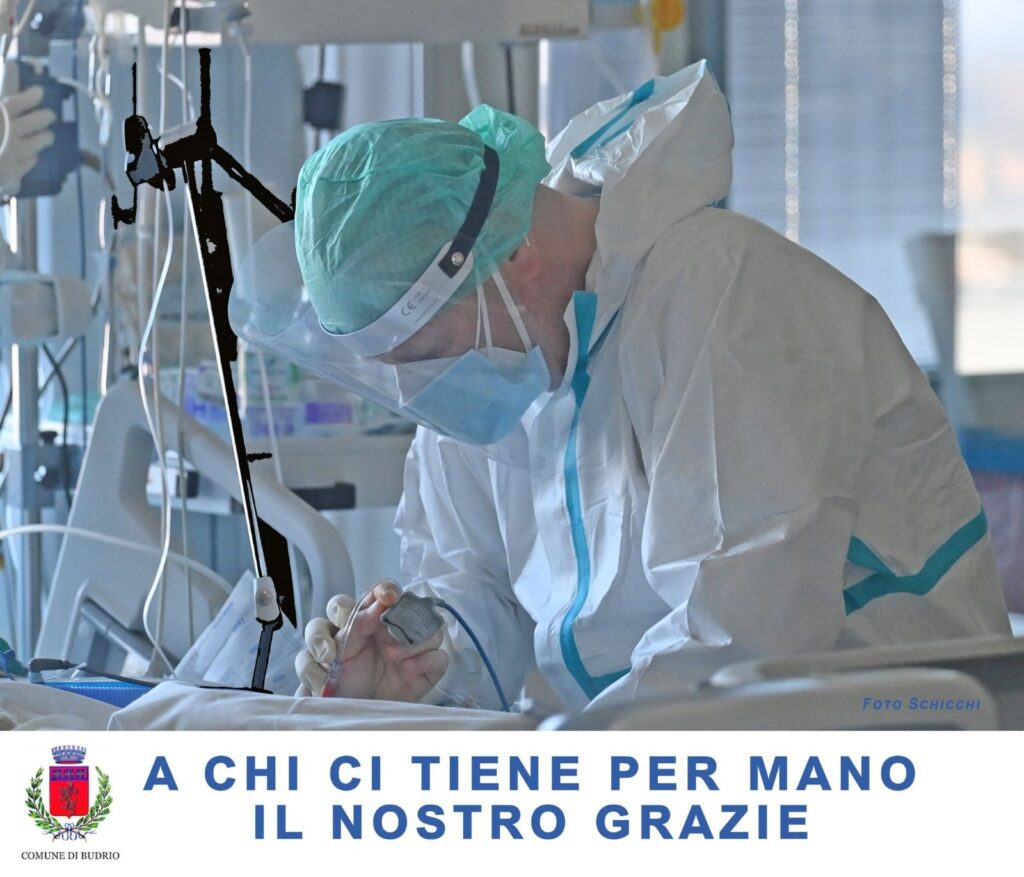 Da oggi sulla facciata del palazzo comunale di Budrio (Bo), è installato un grande manifesto che esprime un ringraziamento al personale sanitario impegnato nella battaglia contro il Covid. “A chi ci tiene per mano il nostro grazie” è la frase che accompagna la foto di un operatore sanitario impegnato con un paziente. Il sindaco di Budrio Maurizio Mazzanti ringrazia a nome di tutti i cittadini per il lavoro di questi mesi. ” L’iniziativa deve rappresentare un momento di riflessione per fare capire l’enorme sforzo che state facendo, in questi momenti drammatici, per salvarci la vita”