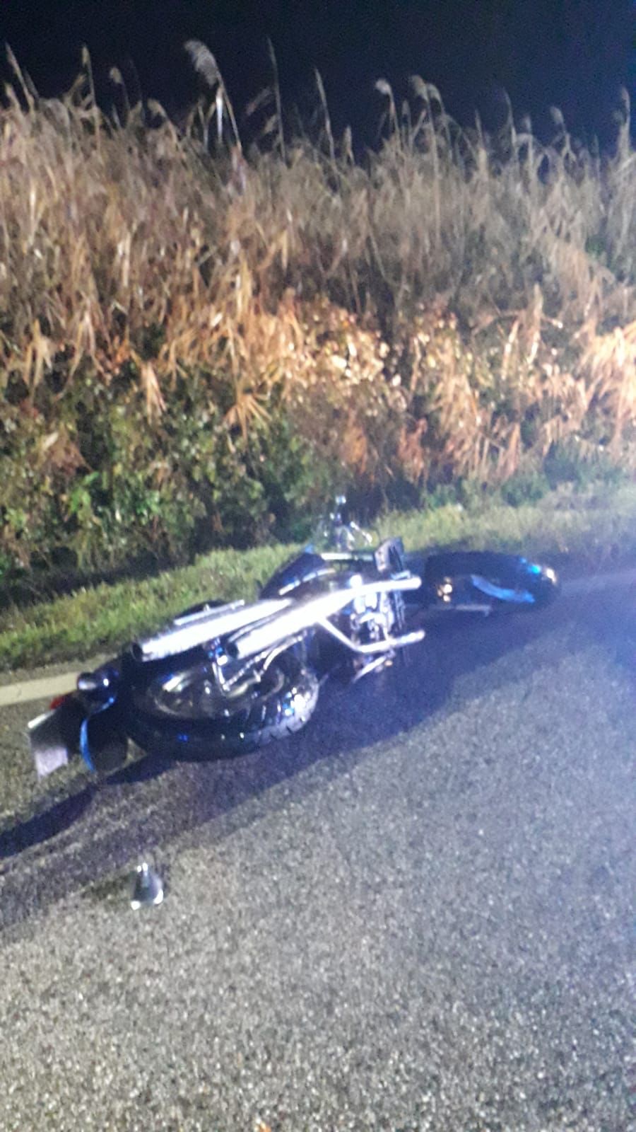 La moto sulla quale viaggiava il 23enne che ha perso la vita