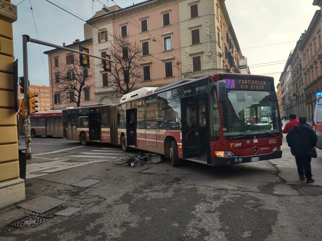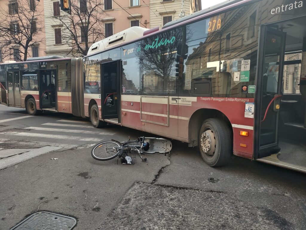 Pauroso incidente, fortunatamente dalle conseguenze non gravi, avvenuto intorno alle 15:00 di oggi all’incrocio tra via Indipendenza e via Irnerio, nel centro di Bologna. Un autobus della linea 27 proveniente da via Irnerio, mentre svoltava a destra su via indipendenza ha urtato una bicicletta che procedeva sul lato destro del mezzo pubblico. Probabilmente la ciclista, una ragazza straniera originaria dello Sri Lanka, non si era accorta della svolta del bus e voleva appunto “sfilarlo” a destra per procedere diritto. Fortunatamente la giovane non ha riportato conseguenze: è stata portata via in cod. 1 per accertamenti.