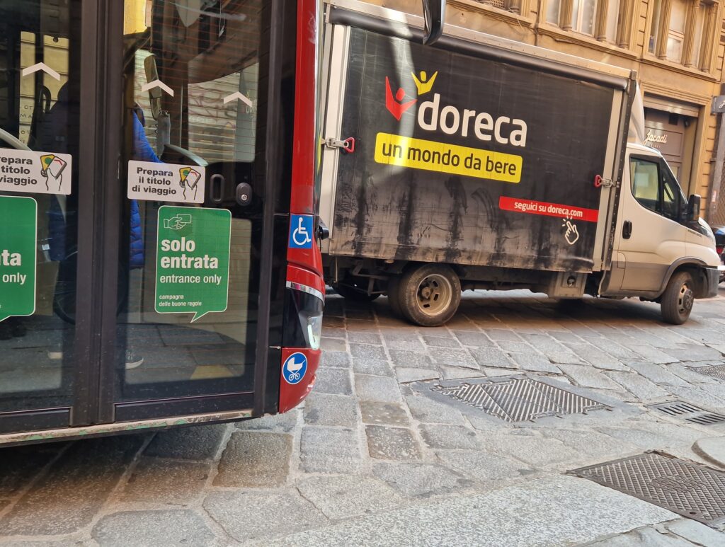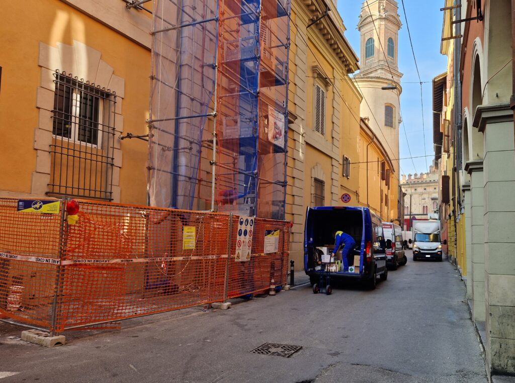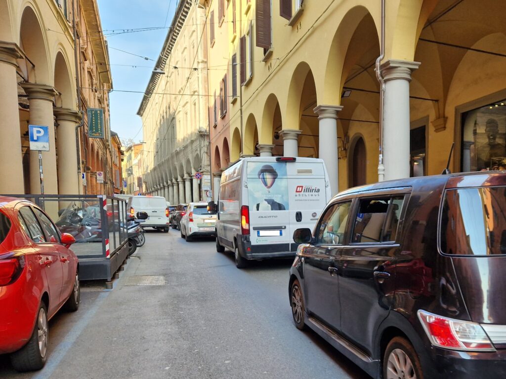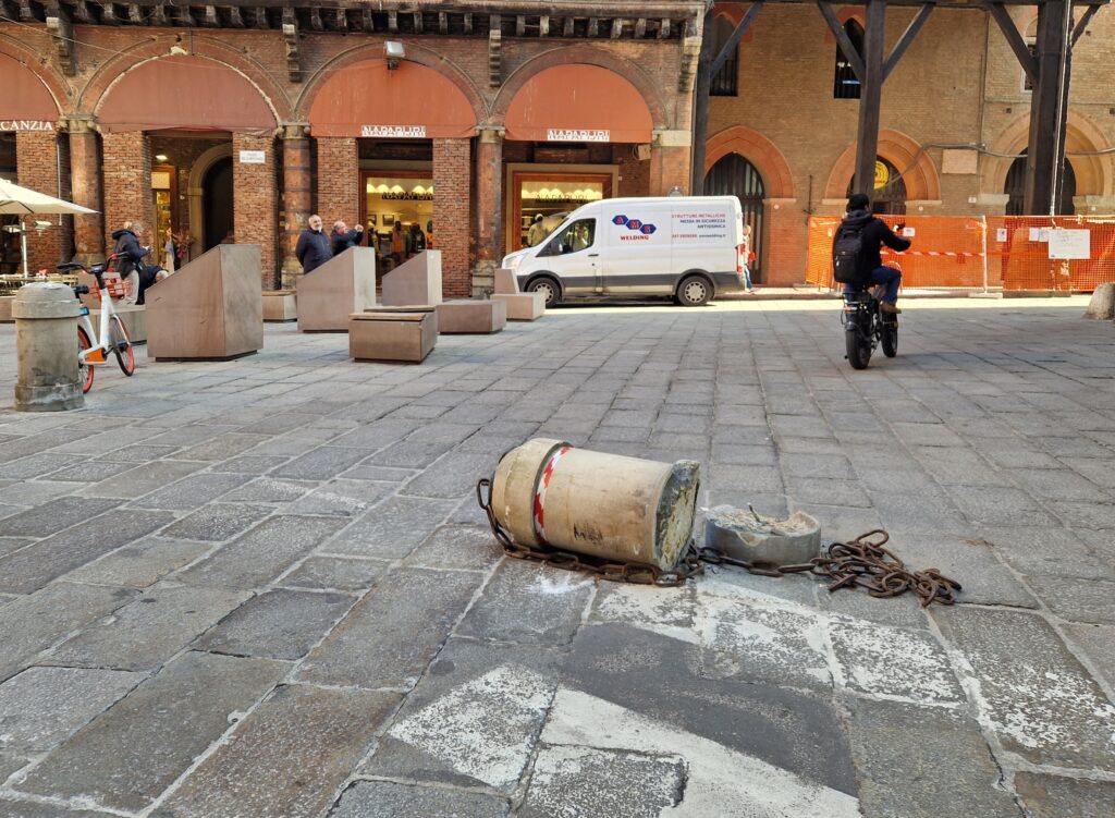 In via San Vitale poco dopo le 10 una lunga fila di veicoli incolonnati a causa di un vero e proprio tappo che si era creato nel punto in cui la strada è interrotta, ormai da quasi un anno e mezzo, a causa del maxi-cantiere allestito per la messa in sicurezza della torre Garisenda. Diversi mezzi per il carico-scarico si sono incastrati tra loro costringendo gli autisti a manovre tutt’altro che facili. Uno dei mezzi più grossi ha urtato pure una Smart danneggiandone il muso. A pochissima distanza, intanto, un fittone di piazza della Mercanzia è stato spezzato in due ed è finito a terra: con ogni probabilità l’effetto dell’urto con un veicolo.