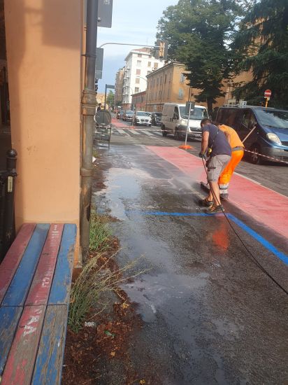 Non c’è pace per la ciclabile di via Saragozza, a Bologna: stavolta è stata la pioggia delle ultime ore a danneggiare un tratto di pista appena verniciato.