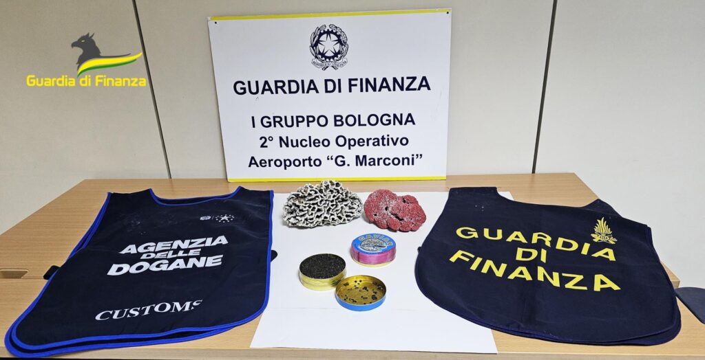 La Guardia di Finanza e i funzionari dell’Agenzia delle Dogane e dei Monopoli hanno sequestrato due coralli dal peso di 1,4 chili e 563 grammi di caviale di storione. L’operazione è stata eseguita dai militari in servizio all’Aeroporto Marconi, nell’ambito dell’attività di vigilanza e contrasto sul commercio di specie protette e tutelate. I finanzieri hanno scoperto i beni nascosti all’interno dei bagagli di due passeggeri, un italiano e un russo, che tornavano dalla Thailandia e da Mosca. I controlli doganali eseguiti dai militari del Corpo e dai funzionari doganali, in attuazione della “Convenzione di Washington – CITES”, sono finalizzati a contrastare il commercio internazionale illegale della flora e della fauna selvatica e rappresentano un essenziale presidio a tutela delle specie in via di estinzione, concorrendo alla salvaguardia della biodiversità