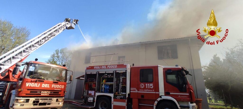Sono state una decina le squadre dei vigili del fuoco di Bologna intervenute nel primo pomeriggio a Granarolo Emilia, in via Marconi, per un incendio divampato sul tetto di una casa indipendente. La palazzina, su due piani, è costruita in muratura con copertura in travi in legno e coppi. Il rogo, le cui cause sono da accertare, ha coinvolto interamente il tetto che in diverse sezioni è crollato. Incolumi gli abitanti dei due appartamenti, in totale 4 persone, che sono riusciti autonomamente a mettersi in salvo. A causa del cedimento della copertura, la palazzina è stata dichiarata non fruibile.