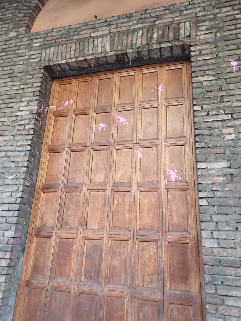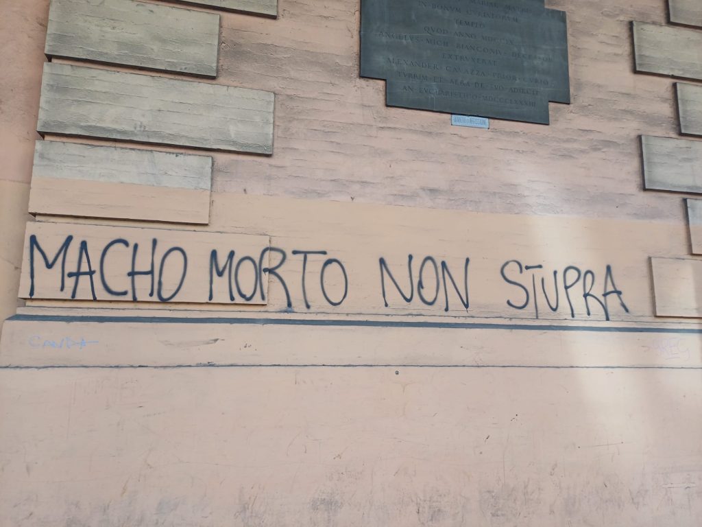 Altri imbrattamenti sono stati segnalati anche sui muri e sul portone della chiesa di Santa Maria e San Domenico della Mascarella, comparsi sempre dopo la manifestazione di ieri.