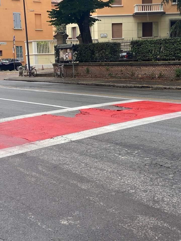 La vernice rossa appena posata sulla ciclabile di via Saragozza, a Bologna, si sta già staccando. La tinteggiatura infatti è stata effettuata dagli operai solo ieri, suscitando peraltro l’ironia social per il colore rosso acceso. Oggi però l’amara sorpresa: in alcuni punti la vernice è già deteriorata e addirittura si stacca, come testimoniano le immagini. “Si ipotizza un problema legato a particolari condizioni dei tratti di asfalto interessati dai lavori, o al singolo lotto di vernice. – scrive oggi l’amministrazione comunale in una nota – Sono in corso le doverose verifiche con la ditta esecutrice, per chiarire la natura del danneggiamento. I lavori saranno in ogni caso consegnati nei tempi previsti e a perfetta regola d’arte” conclude il Comune