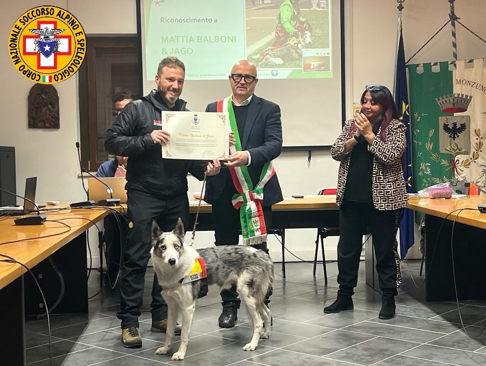 Un riconoscimento simbolico, ma dall’alto valore etico e sociale quello che il Consiglio comunale di Monzuno ha voluto dare a Mattia Balboni, Vicecapo stazione Rocca di Badolo, e al suo compagno Jago (dell’Unita Cinofila del Soccorso Alpino Emilia Romagna). Sono loro due che nel mese di agosto hanno trovato un anziano signore che da due giorni risultava disperso in zona boschiva dell’Appennino Bolognese nel comune di Monzuno. Ore di ricerca e preoccupazione per il pensionato bolognese che da giorni aveva fatto perdere le proprie tracce. Giovedì sera il sindaco di Monzuno, Bruno Pasquini, affiancato da tutta la giunta e a nome di tutta la comunità ha consegnato la targa e ringraziato in via ufficiale Mattia e il suo compagno fidato. Non solo, Pasquini ha anche espresso i ringraziamenti anche a tutti i volontari del Soccorso Alpino e Speleologico Emilia Romagna che tutti i giorni scendono in campo a tutela del territorio e delle persone che vi abitano