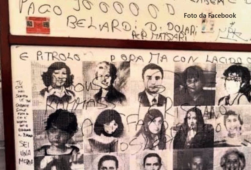 Scritte offensive sui volti delle vittime della strage del 2 agosto 1980
