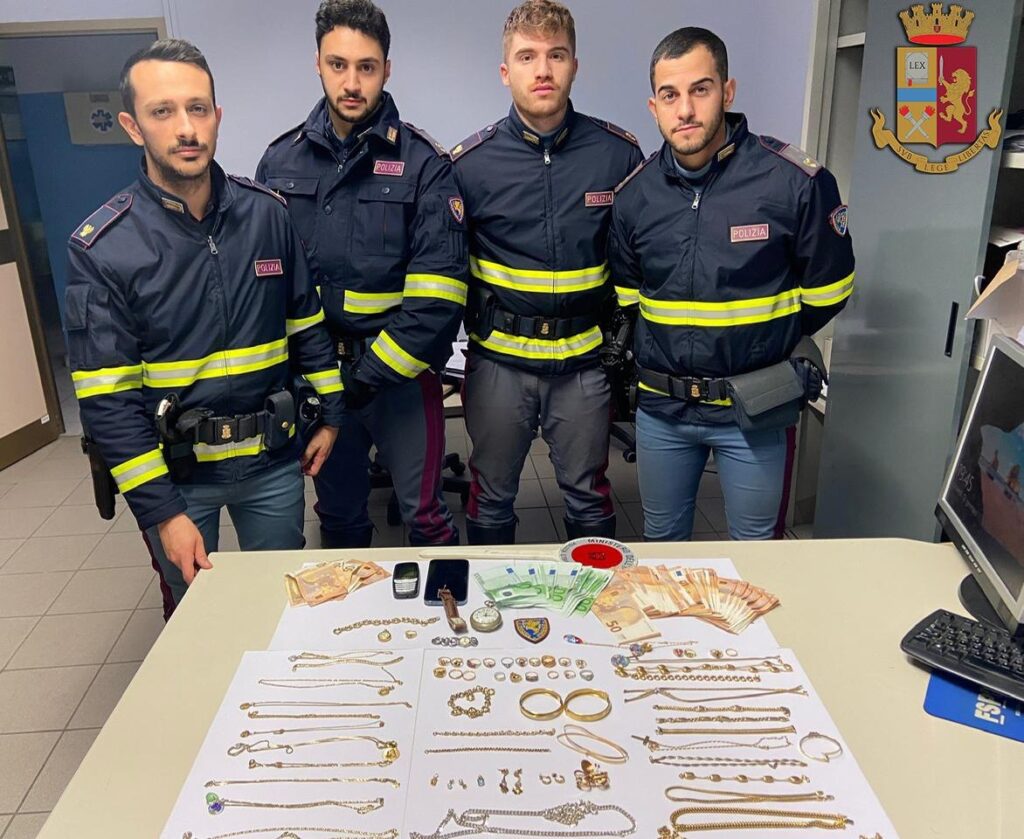 Interrogati in merito alla merce rinvenuta, i due hanno dato spiegazione evasive. Sono in corso indagini da parte della polizia giudiziaria per ricostruire la provenienza dei gioielli, probabilmente rubati, e del denaro. I due, su disposizione dell’Autorità Giudiziaria,sono stati denunciati in stato di libertà per il reato di ricettazione.