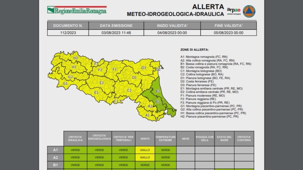Allerta gialla per temporali, venerdì in Emilia-Romagna, tranne che sulla costa e la collina romagnola. Previsti anche venti forti in buona parte della regione. Lo fanno sapere la Protezione civile e Arpae avvisando che “sono previste condizioni favorevoli allo sviluppo di temporali anche di forte intensità con possibili effetti e danni associati più probabili sul settore occidentale della regione e sulle aree di pianura settentrionali”. Sono previsti anche venti di burrasca moderata (62-74 Km/h) con rinforzi o raffiche di intensità superiore sui rilievi centro orientali della regione.
