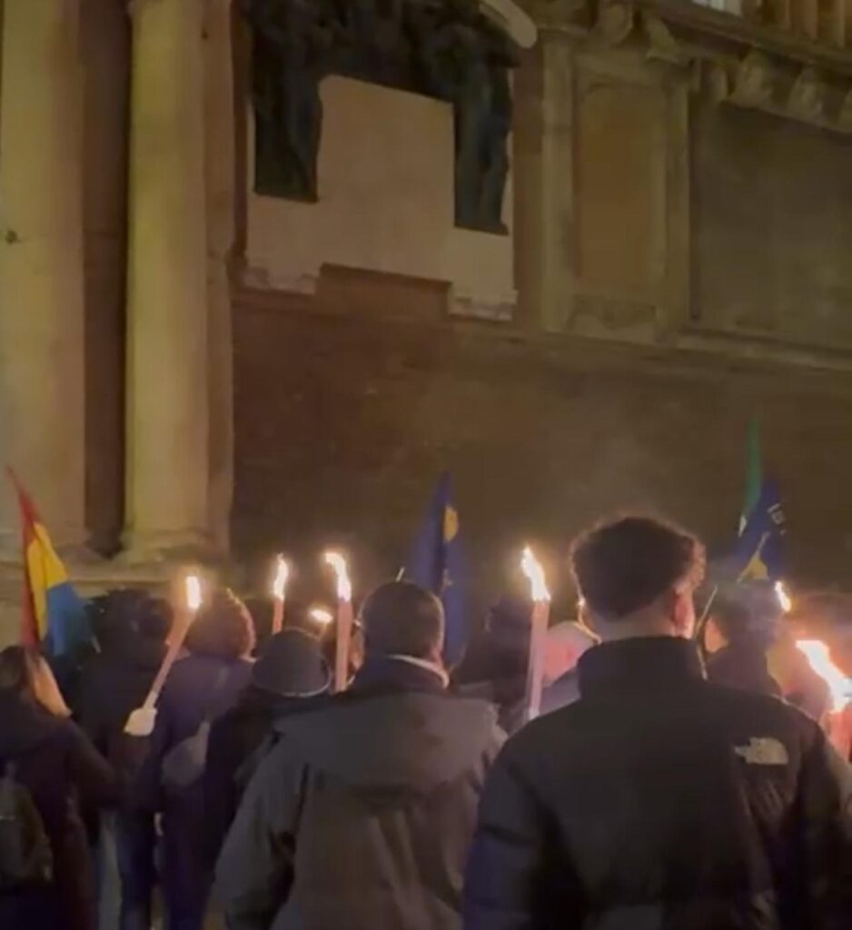 Come da 15 anni a questa parte il centrodestra aveva organizzato un presidio per ricordare le vittime delle Foibe con tanto di deposizione di corone di fiori dentro il cortile di Palazzo d’Accursio ma questa volta è scoppiato il putiferio con tanto di querele e contro denunce. Ad aprire le danze il sindaco Lepore che ha annunciato, dopo la manifestazione di domenica sera, un blitz della Rete dei Patrioti (poi si è corretto, perché si trattava dei giovani di Fratelli D’Italia) dentro il Comune, blitz in realtà che non sarebbe avvenuto propriamente così come riportato dal primo cittadino, Il sit in sarebbe stato autorizzato, come ha documentato Stefano Cavedagna riportando il documento d permesso di Questura-Prefettura e dentro il cortile si sarebbero recate solo le autorià anche governative del centro-destra, lo stesso Cavedagna, Bignami, Sassone e la Zuntini che hanno pure dovuto suonare il campanello per entrare. I quali a loro volta annunciano contro querele. Il tutto mentre gli uomini del centrodestra venivano circondati dai Centri sociali (gli stessi responsabili dei pestaggi di poliziotti e passanti nella recente manifestazione di Piazza XX settembre) che urlavano loro come “uccidere i fascisti non sia un reato”.