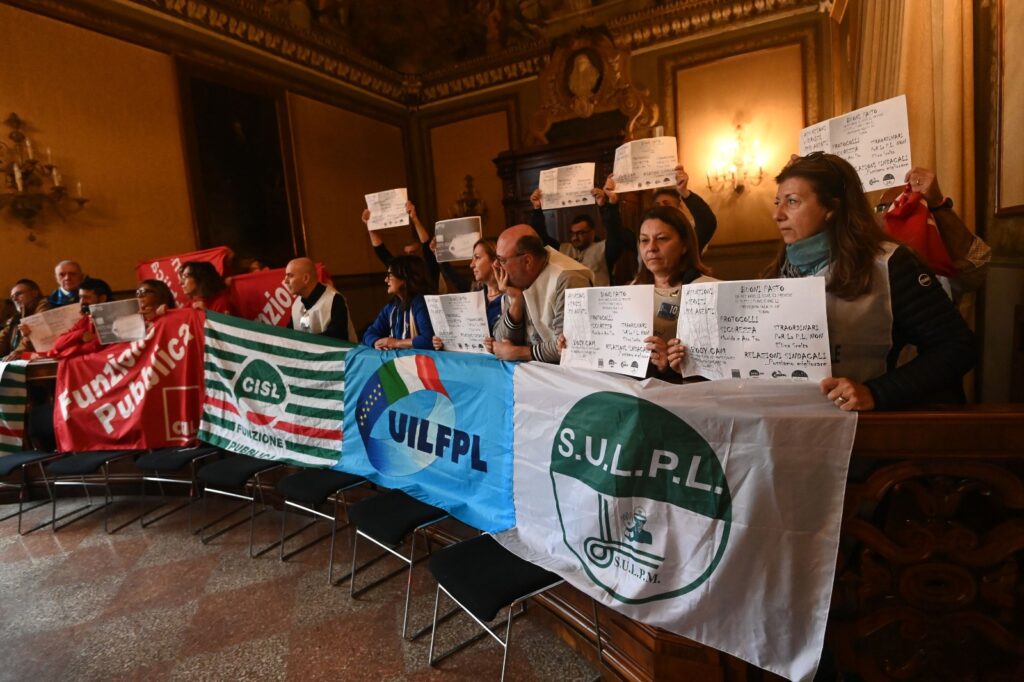 Protesta degli agenti di polizia locale durante la seduta del Consiglio comunale. Una delegazione di rappresentanti sindacali (Cgil, Cisl e Uil) e agenti del sindacato Sulpl ha interrotto i lavori esponendo bandiere e volantini: “la protesta – si apprende dal volantino – a causa di un prolungato tergiversare e sostanziale immobilismo dell’ amministrazione sui temi del riconoscimento del buono pasto sui tre turni, per la mancata adozione dei protocolli inerenti alla sicurezza sulla malamovida ed i tso, sul ritardo del pagamento degli straordinari, sul sempre più esiguo numero di agenti a fronte di sempre maggiori compiti loro assegnati, su un’ inaccettabile modalità di relazioni sindacali tra l’amministrazione stessa e le organizzazioni sindacali”. “Totale solidarietà agli agenti” è stata espressa dal capogruppo della Lega, Matteo Di Benedetto, che ha aggiunto: “Nonostante le tante promesse, dal Comune non sono arrivate risposte concrete alle istanze della polizia locale”. Il capogruppo del Pd Michele Campaniello si è impegnato per fissare un incontro tra le parti per un confronto sui temi sollevati durante il presidio in Consiglio.