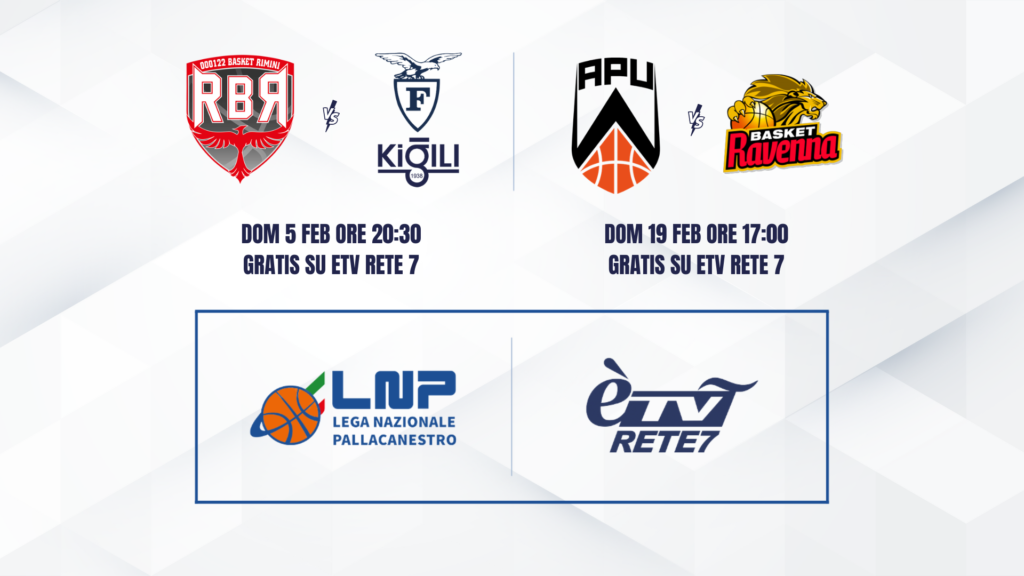 Lega Nazionale Pallacanestro comunica la programmazione televisiva del mese di febbraio 2023, relativa alle dirette del campionato di Serie A2 Old Wild West su E’Tv Rete7.
