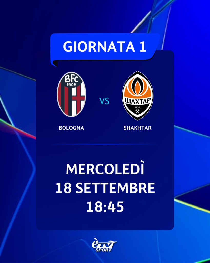 • 1° giornata, BOLOGNA-SHAKHTAR DONETSK, mercoledì 18/9 ore 18:45;