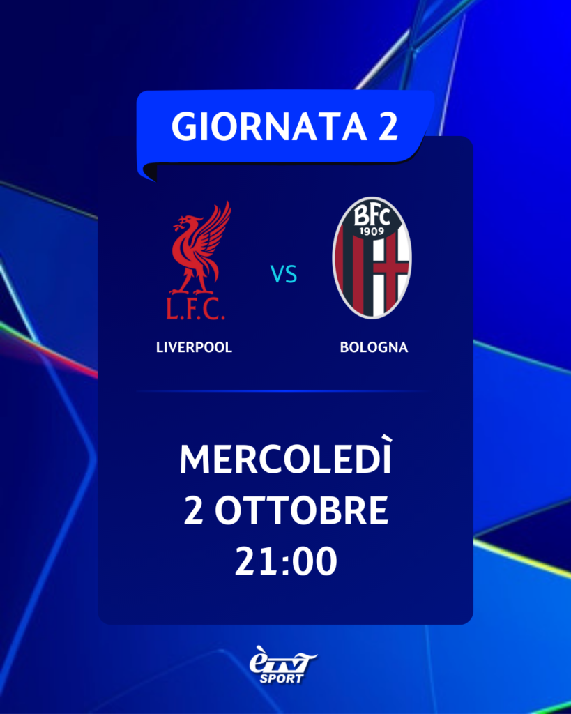• 2° giornata, LIVERPOOL-BOLOGNA, mercoledì 2/10 ore 21;