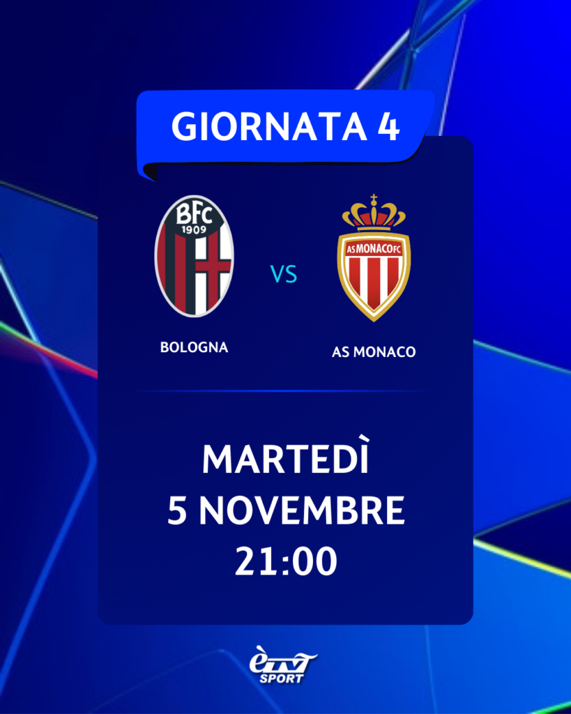 • 4° giornata, BOLOGNA-MONACO, martedì 5/11 ore 21;