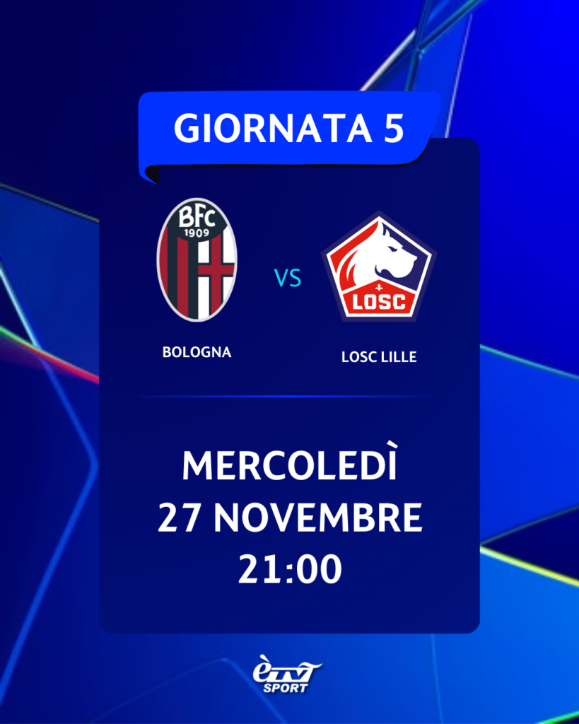 • 5° giornata, BOLOGNA-LILLE, mercoledì 27/11 ore 21;