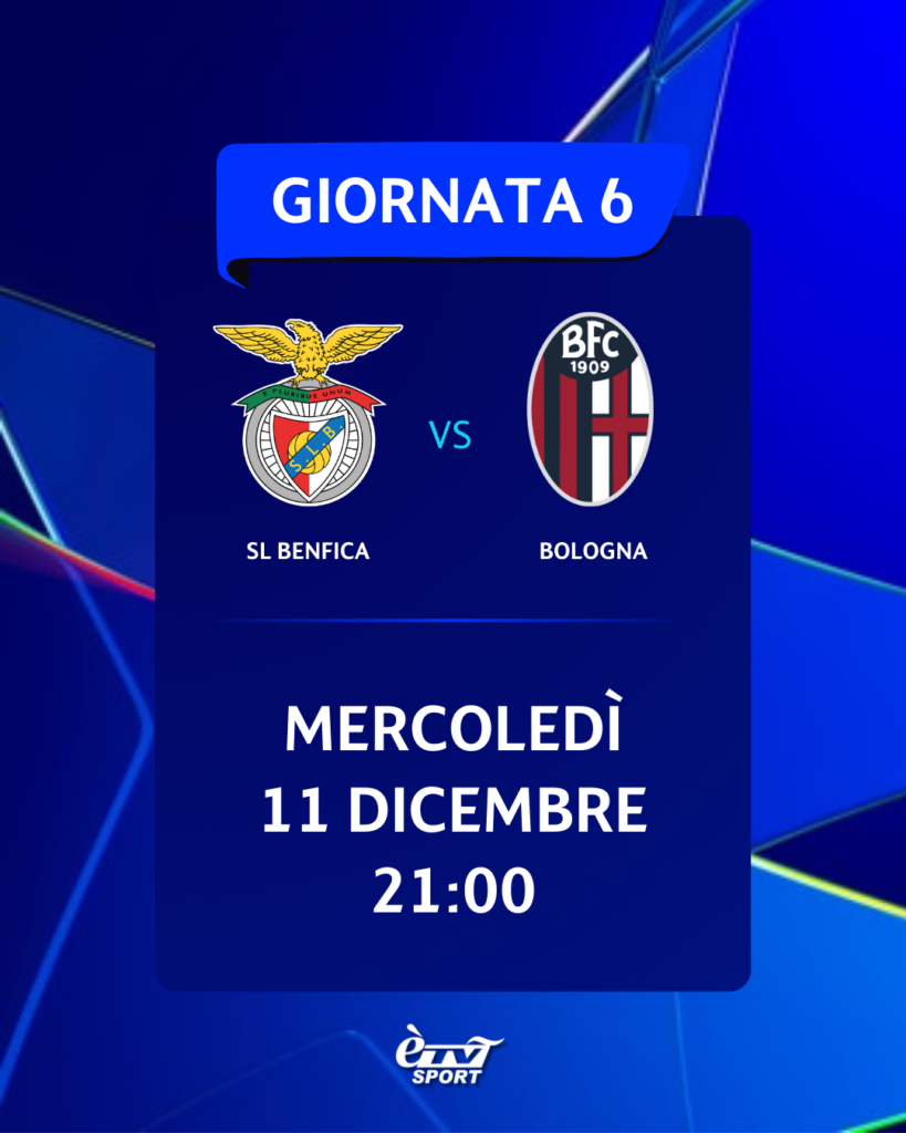 • 6° giornata, BENFICA-BOLOGNA, mercoledì 11/12 ore 21;