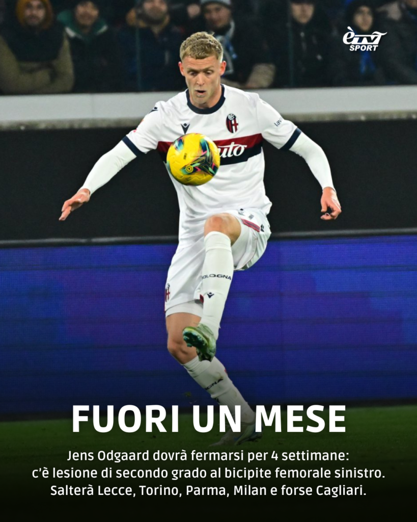 Brutte notizie in casa Bologna: Jens Odgaard dovrà fermarsi per circa quattro settimane a causa di un infortunio muscolare rimediato nella sfida di Coppa Italia contro l’Atalanta.