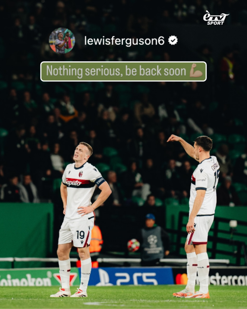 Il giocatore è stato sottoposto agli esami del caso che hanno “evidenziato una lesione di grado lieve ai flessori della coscia destra”. I tempi di recupero saranno brevi e stabiliti giorno per giorno in base all’andamento clinico, ma il calendario ravvicinato del Bologna potrebbe fargli saltare due partite: il 31 gennaio alle 20:45, la gara al Dall’Ara contro il Como e il 4 febbraio alle 21:00, a Bergamo, in Coppa Italia contro l’Atalanta. “Fergie” potrebbe rientrare nella partita successiva contro il Lecce, con data e orario ancora da confermare.