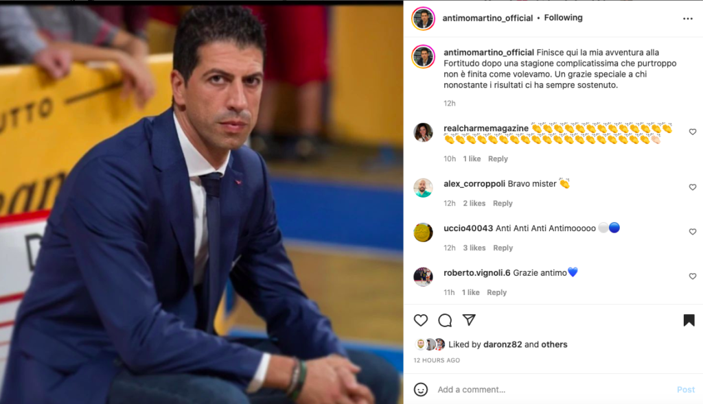 Poche parole e chiare di ringraziamento sul proprio canale Instagram in tarda serata: “Finisce qui la mia avventura alla Fortitudo dopo una stagione complicatissima che purtroppo non è finita come volevamo. Un grazie speciale a chi nonostante i risultati ci ha sempre sostenuto.”